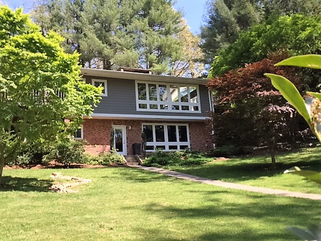 This wonderful home has all the features that I love about a mid-century home. Vaulted, beamed ceilings, walls of windows, relaxing outdoor spaces and two gas log fireplaces. There’s also a finished lower level that could easily be an in-law suite. The yard is stunning with the lake view and there’s a dock and lake access across the street that are part of this property. Very special!