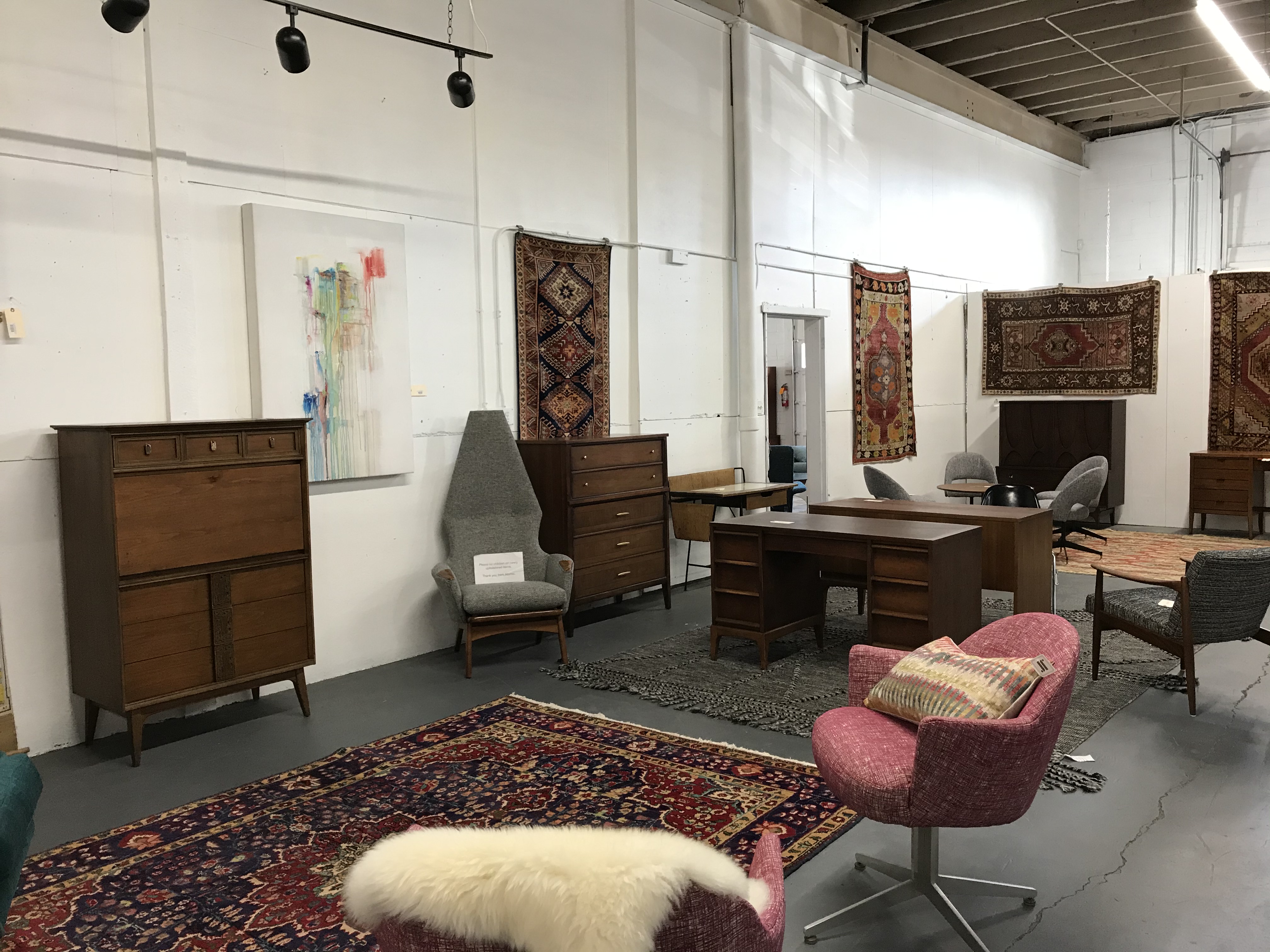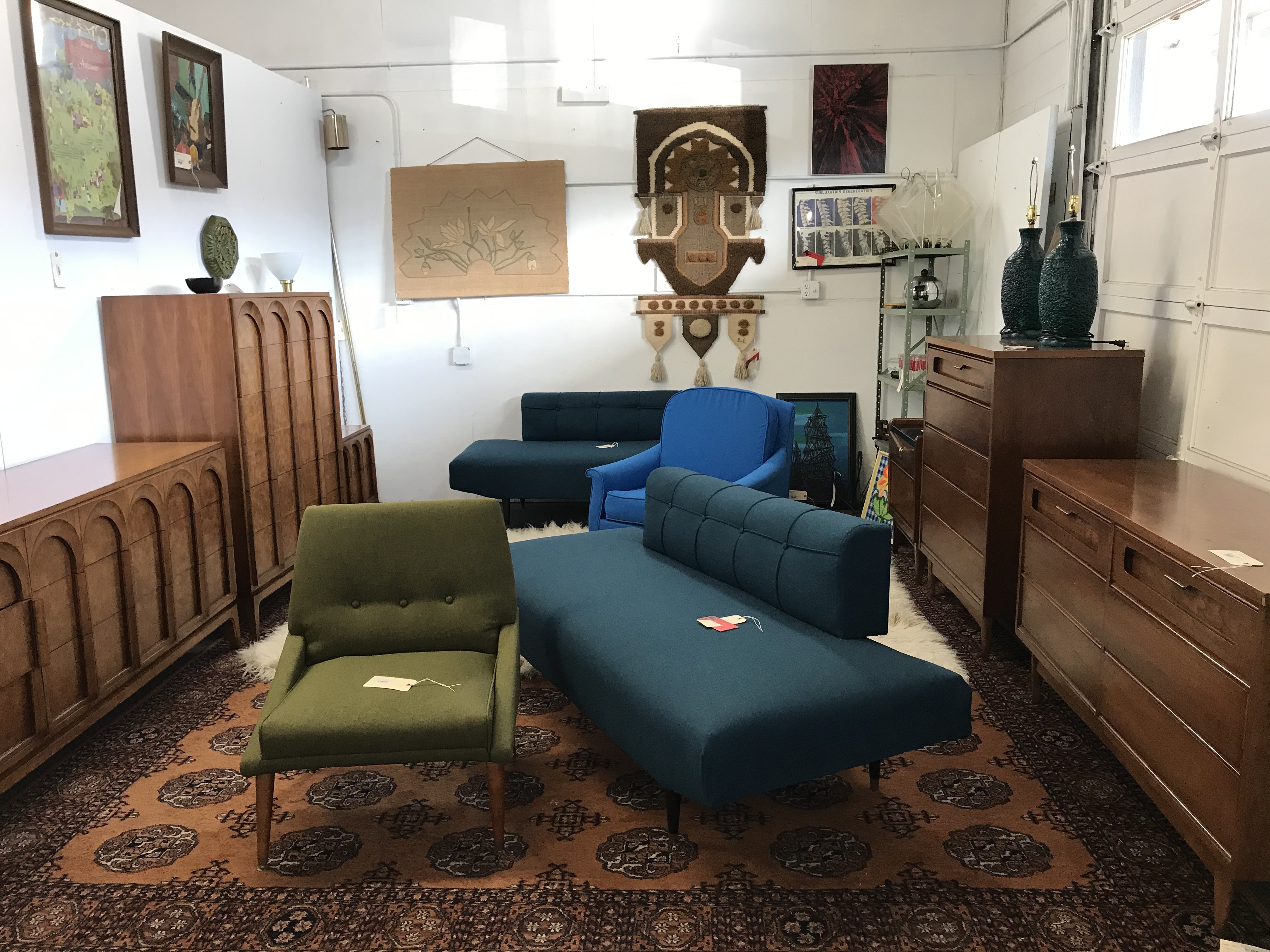 On any given day you’ll find swanky, Mad Men era sofas, freshly reupholstered and in an array of cool and unexpected colors.