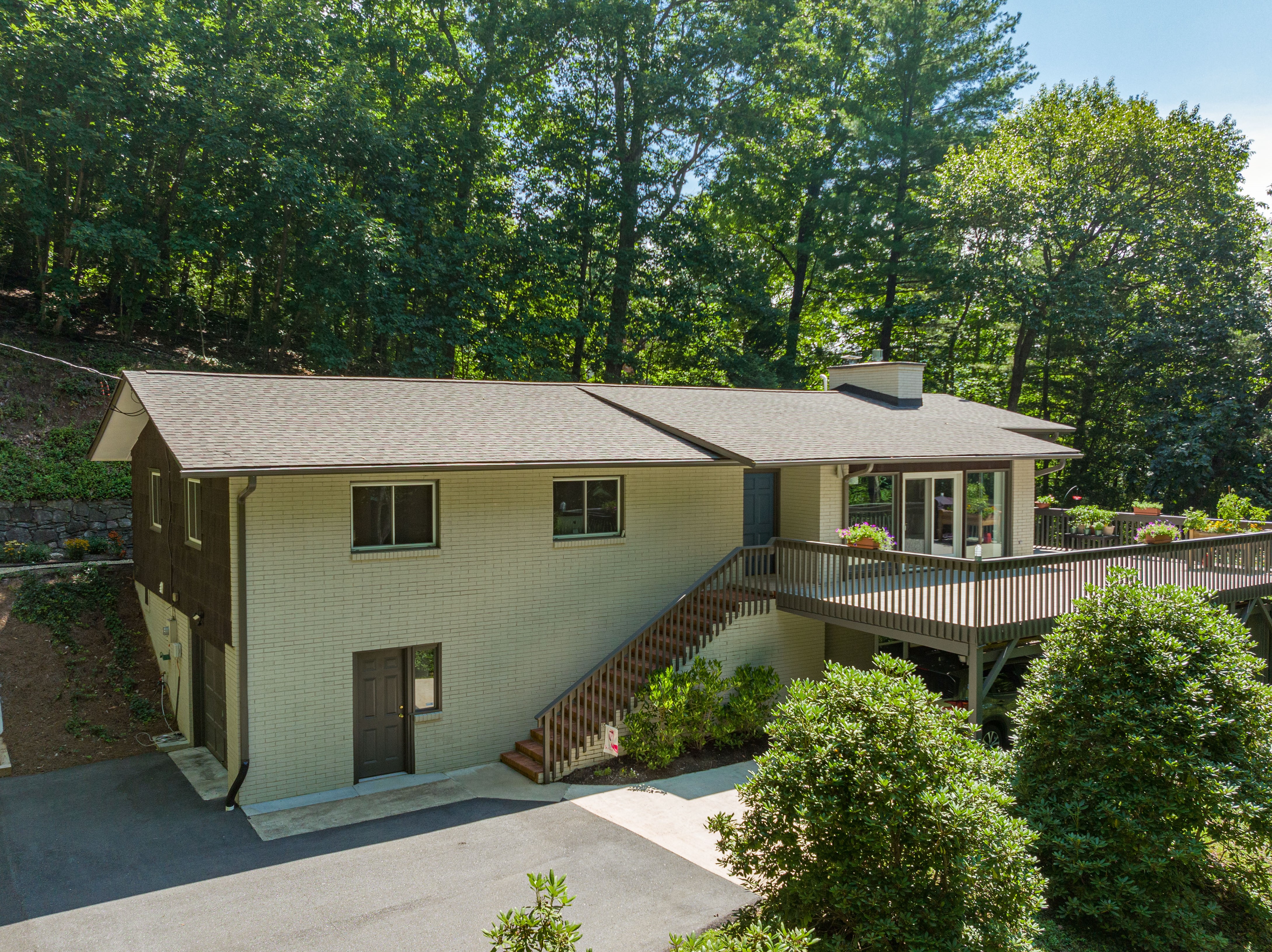 1959 Mid-Century Modern nestled in the trees of Sherwood Heights, private, yet only minutes from North Asheville amenities.
