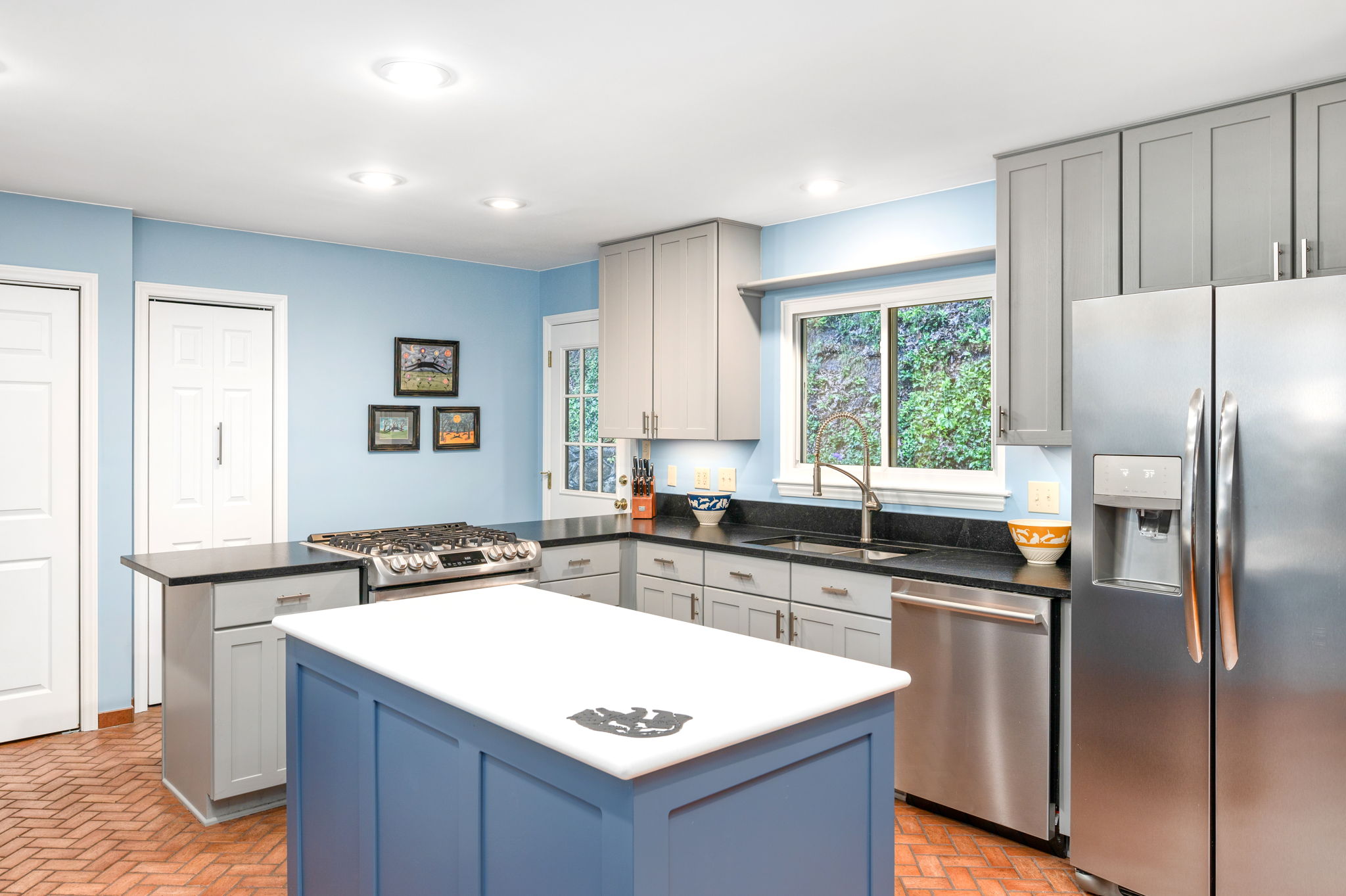 Granite and quartz countertops and all newer stainless appliances including a gas range in the thoughtfully designed kitchen.