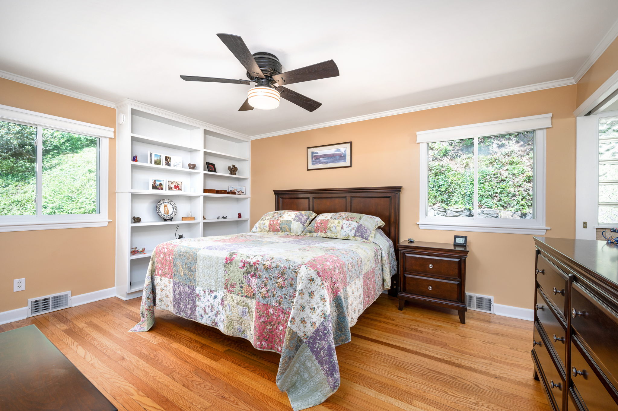 Perfect main-level living with spacious primary suite, two guest bedrooms and hall bath.