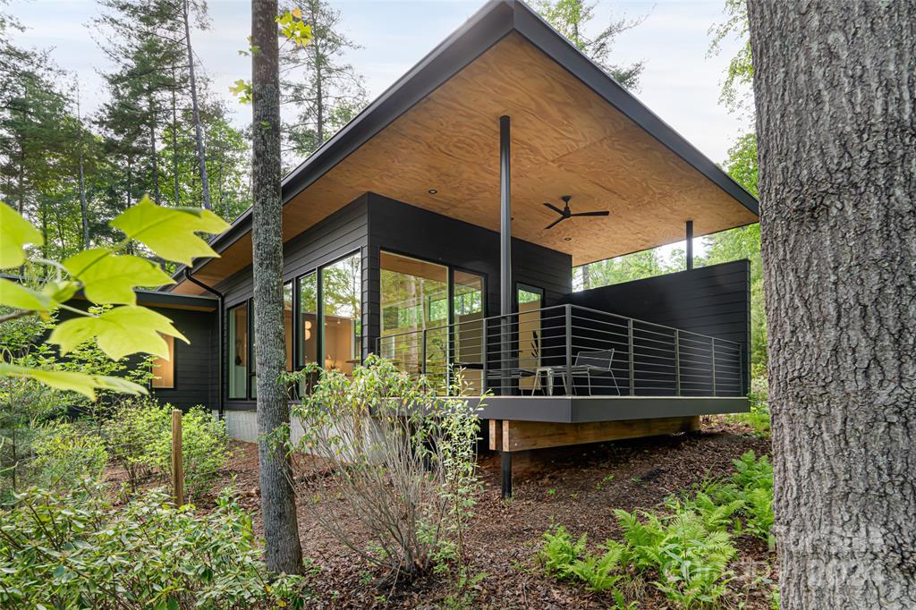 Just 7 miles east of downtown Asheville, tucked amidst the naturally forested landscape of Sovereign Oaks on a peninsular lot with peek-a-boo mountain views