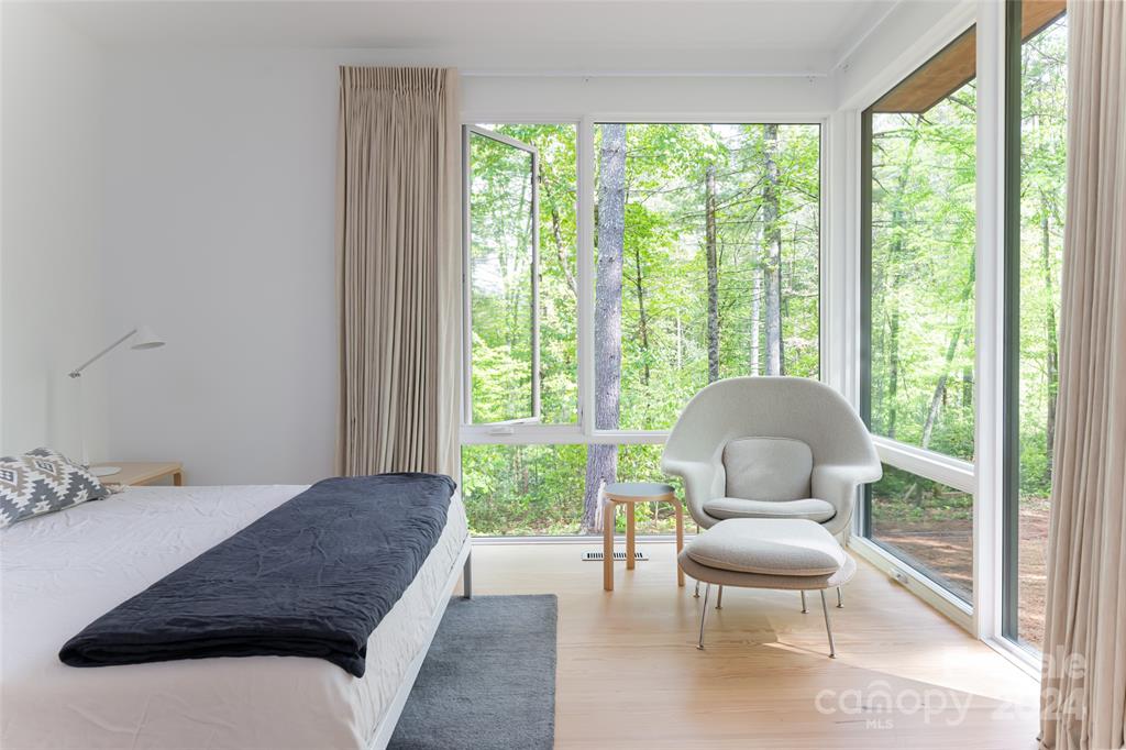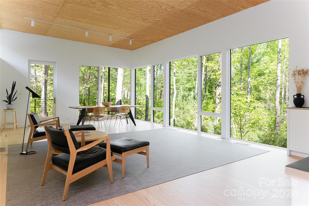 Eight-foot windows along three-sides of the home blur the lines between interior and exterior