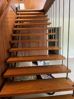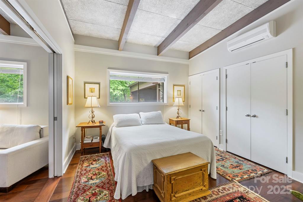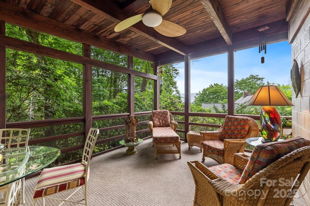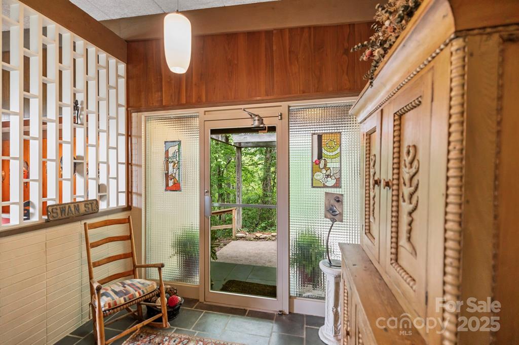 I was finally able to preview Inwood, a spectacular mid-century modern gem in Black Mountain’s Christmount community. Designed in 1959 by architect Harold Radabaugh as a summer retreat, this home was inspired by the design principles of Frank Lloyd Wright. Its post-and-beam construction features a wall of windows that perfectly frame the mountain views, creating a seamless connection to the outdoors. The home welcomes you through a unique glass entry door and into a foyer with original slate floors. Inside, the living and dining rooms are a showcase of thoughtful design, with maple paneling, custom built-ins and a fireplace adding warmth and character. A dramatic floating staircase leads to an expansive lower-level living space. A screened porch and patio offer perfect spots to enjoy the beautiful mountain setting.